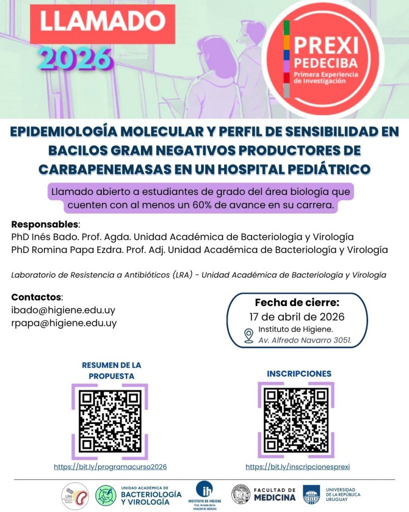 La pasantía permitirá a la/el estudiante adquirir formación en microbiología, biología y epidemiología molecular, análisis genómico y estudio de mecanismos de resistencia antimicrobiana, participando activamente en un proyecto con impacto sanitario y potencial generación de publicaciones científicas.