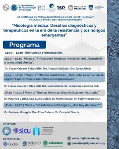 En el marco de las VII Jornadas de actualización de la Unidad Académica de Parasitología y Micología. Instituto de Higiene, Facultad de Medicina, Universidad de la República los invita a participar de la actividad académica: «Micología Médica: desafios diagnosticos y reapeuticos en la era de la resistencia de la resistencia y los hongos emergentes»